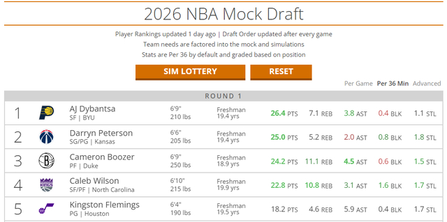 而在DX的预测上,布泽尔的预测顺位是第四,最终是由国王选中他。状元的人选都是杨百翰大学的迪班萨,看起来四号位的布泽尔被看衰前景。